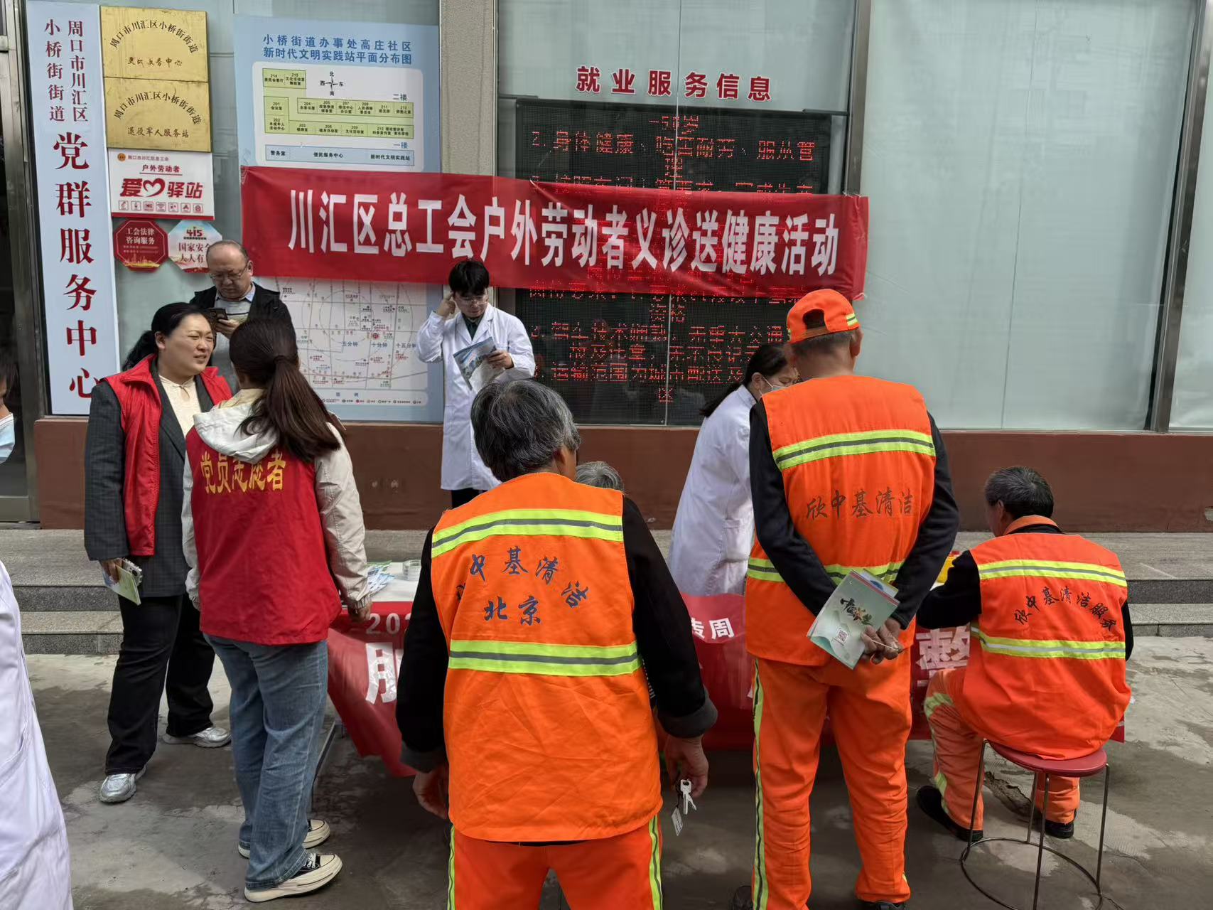 为切实关心关爱户外劳动者身心健康,把工会组织的温暖送到一线劳动者身边,4月10日,川汇区总工会联合周口市人民医院走进高庄社区驿站、富民社区驿站,开展 “情系户外劳动者 健康服务暖人心” 主题关爱活动,为快递员、环卫工人、网约车司机等户外劳动者送上贴心健康服务。