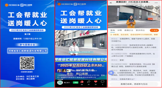 - 2025/12/25 工会直播送岗精准帮扶暖人心 川汇区 总工会第二期直播招聘活